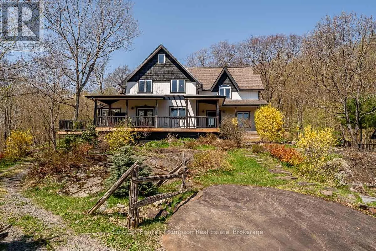 Tucked away in a peaceful setting, this beautifully maintained home is a seamless blend of classic charm and thoughtful craftsmanship. Surrounded by timeless landscaping that pairs natural stone with wood accents, the property offers both beauty and tranquillity from the moment you arrive, featuring 4 bedrooms, 2.5 bathrooms, and 2700+ sqft of incredible living space. The inviting front porch leads into a spacious main floor featuring a bright living room and a cozy family room with a wood-burning fireplace. At the heart of the home is a charming eat-in kitchen, where built-in appliances blend with warm finishes and farmhouse-style design. A breakfast bar offers the perfect spot for casual meals or morning coffee, while a dedicated dining area is ideal for gathering with family and friends. The kitchen flows easily into the sunroom and front porch, creating a bright and functional layout. Upstairs, you'll find 3 large bedrooms, a full bathroom, and the convenience of second-floor laundry. The primary suite offers a peaceful retreat with a walk-in closet and a private ensuite complete with a soaker tub. The third floor provides added flexibility with a 4th bedroom and additional space ideal for guests, a home office, or a kids' retreat. The detached garage includes two bays, extra storage, and a 434 sq ft finished loft space perfect for hobbies, a home gym, game nights, or quiet downtime. A true highlight of the home is the Muskoka room, offering breathtaking views of the private backyard, a professionally landscaped oasis complete with a flagstone patio, hot tub, and sauna. The perfect space to enjoy the changing seasons! Whether you're sipping coffee on a quiet morning or hosting evening gatherings under the stars, this setting delivers privacy and natural beauty year-round. As a bonus, enjoy deeded access to nearby Mary Lake, complete with a communal dock, sandy beach, and open area for play, an incredible opportunity to enjoy the best of the Muskoka lifestyle.